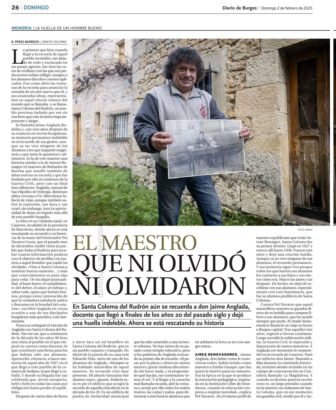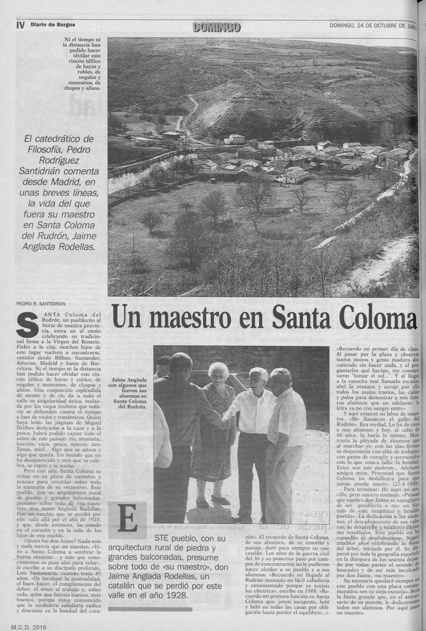 En 1993, con motivo de la muerte del maestro Jaume, apareció una noticia publicada en el Diario de Burgos. Se trata de una noticia emotiva y testimonial de la gran huella que dejó el maestro Jaume en este pueblo.